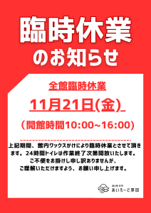 【11月~3月】冬期 道の駅館内営業時間のお知らせ