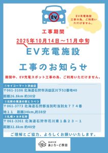 EV充電施設工事のお知らせ【工事期間2025年10月14日~11月中旬】