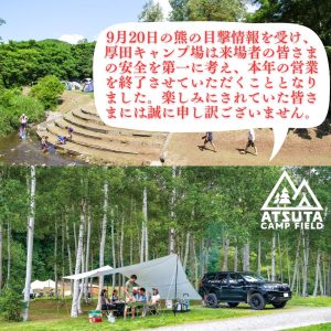【厚田キャンプ場】熊目撃情報により今期営業終了のお知らせ